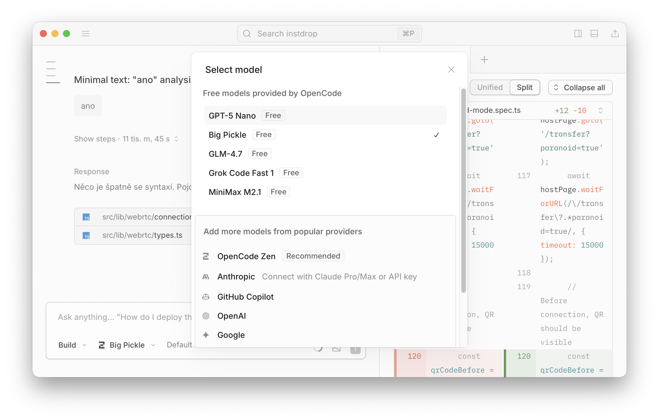 Možnost vybrat si model je klíčová výhoda oproti Claude Code, který je svázaný pouze s modely od Anthropic.